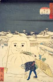 江戸時代の雪だるま 江戸名所道戯尽 廿二 御蔵前の雪 歌川広重 画 日本美術 広重 アジアのアート